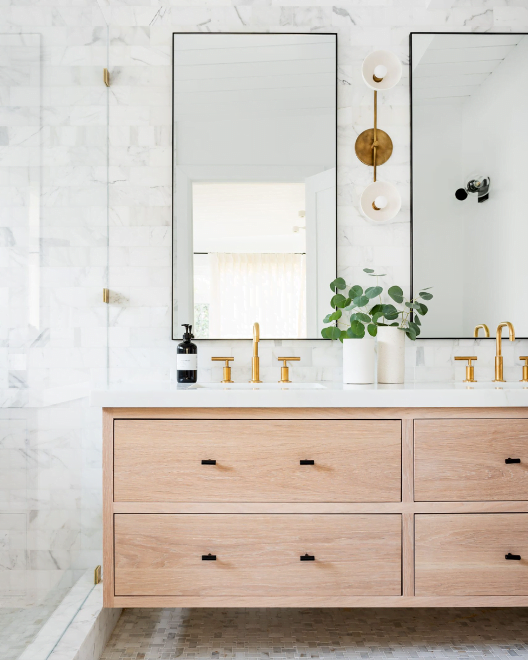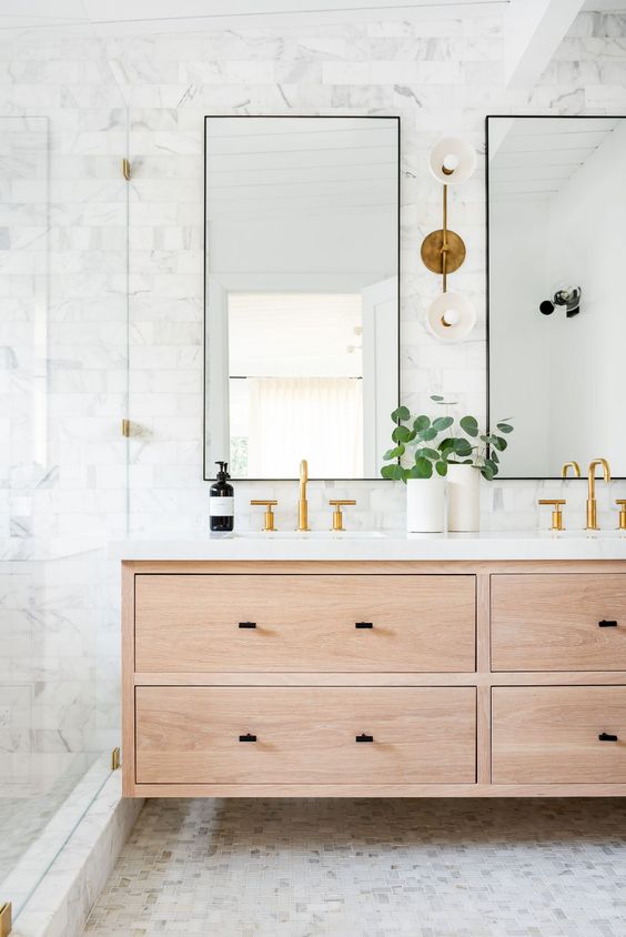 Un baño neutro siempre es un acierto, y los tonos de madera natural son clave del diseño en 2023. El espacio de la casa que le dedicamos al aseo y al bienestar resulta más cálido y sereno con elementos inspirados en la naturaleza. Madera, mimbre, bambú, mármol, piedra evocan la frescura y luminosidad de la naturaleza. Un estilo que se puede lograr con pequeños retoques. La manera más simple es jugar con todos los accesorios y complementos, desde una alfombra o toallero, hasta una jabonera o la tapa del inodoro.