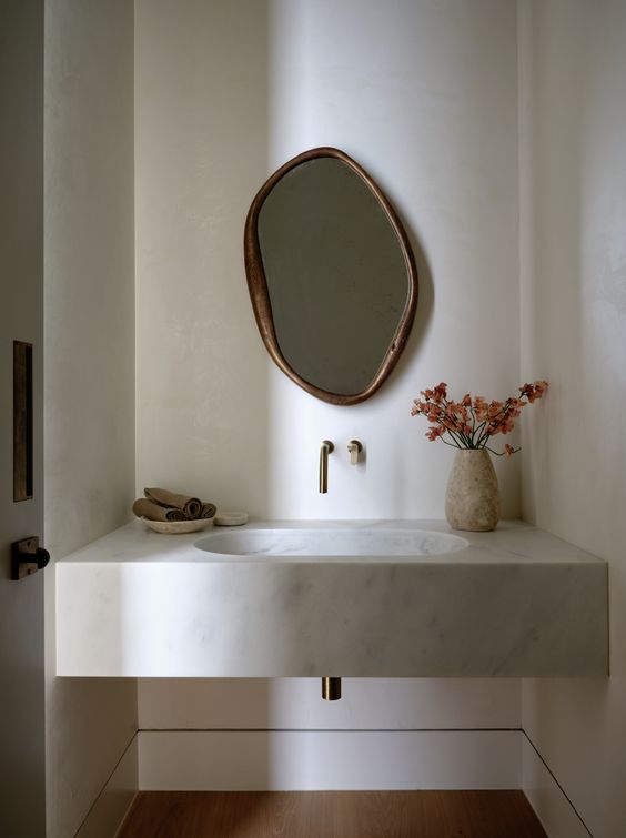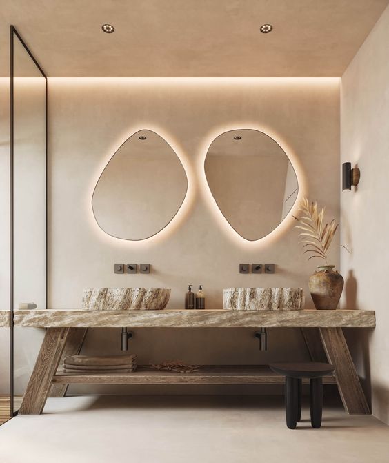 Después de la tendencia de los espejos redondos, llegan los diseños con formas orgánicas. Le dicen “pond mirrors” -en inglés espejos charco- porque sus formas irregulares parecen imitar el movimiento del agua. De líneas sinuosas, los espejos irregulares son los nuevos objetos de deseo de la deco y también se los utiliza en el baño. Pero además de su valor decorativo, este tipo de espejos tiene la función de agrandar visualmente el espacio y potenciar la iluminación. Con este simple cambio, se logra una dosis de excentricidad.
